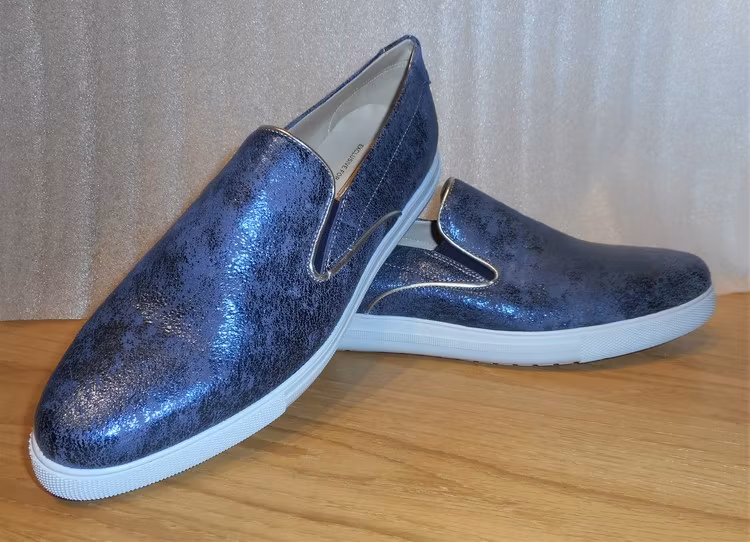 Blå loafer i skinn med glimmereffekt (egen design)